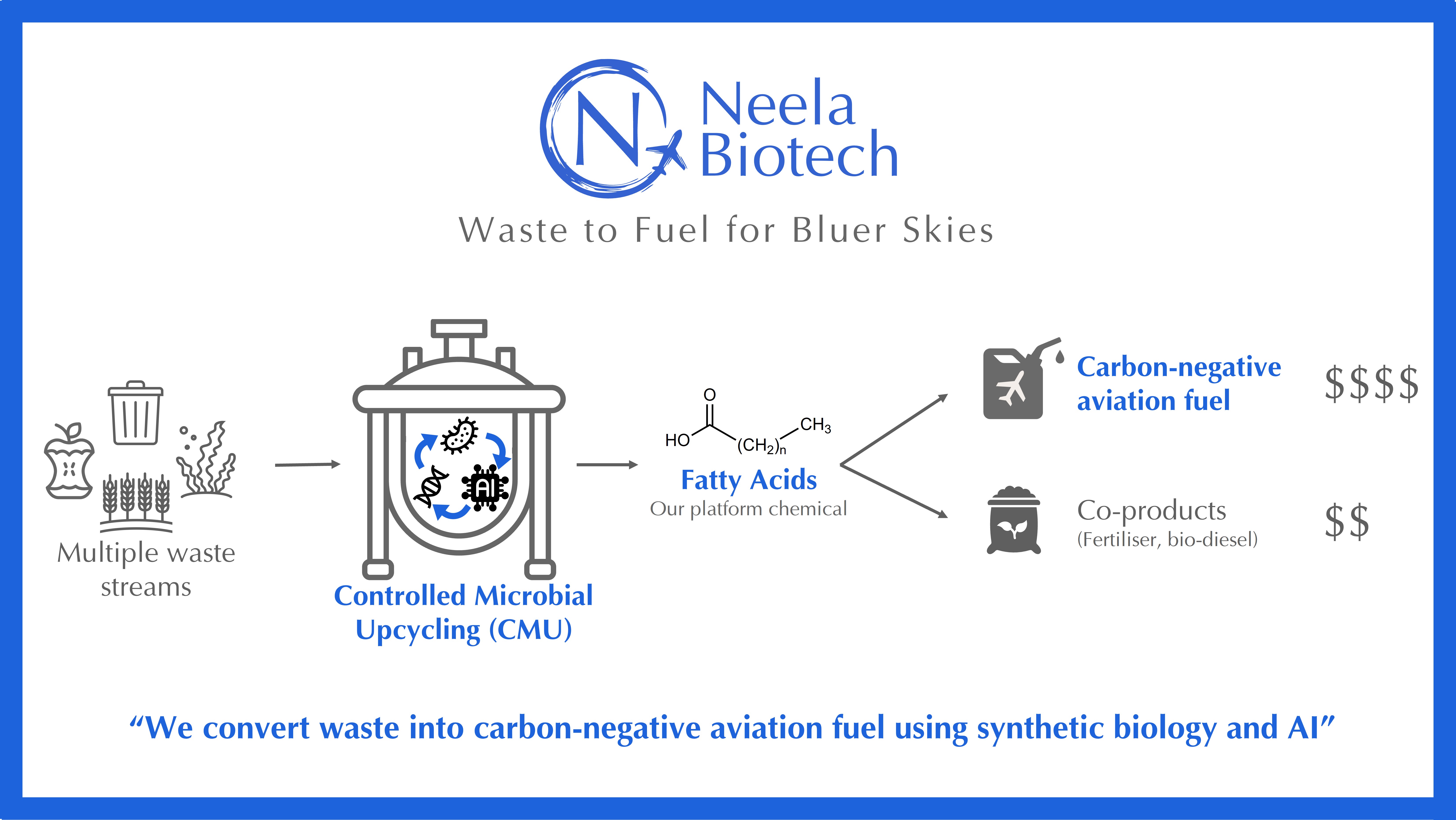 Neela Biotech is also a part of the prestigious IAG Innovation Accelerator, where they are learning about fuel supply chains, certification, and validating the commercial potential of their SAF pathway. IAG is the parent company of airlines including British Airways, Aer Lingus, Iberia and Vueling.