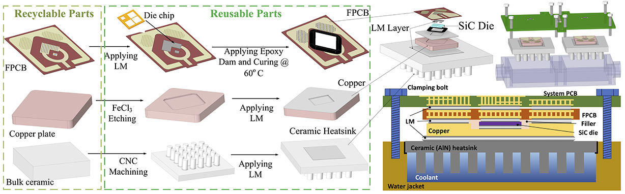 Advanced power module packaging method using liquid metal bonding and direct cooling. Credit: Teng Long