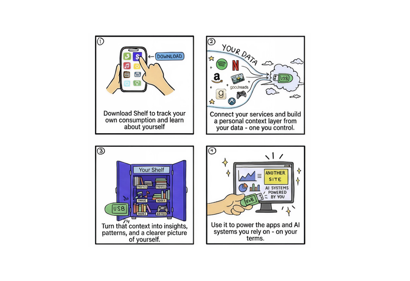 More broadly, Shelf is becoming a foundation for how AI systems interact with individuals. As AI agents become more capable, they increasingly depend on real user context. Shelf allows individuals to aggregate their data and, if they choose, grant systems access to that context so they can act in more useful and personalised ways.