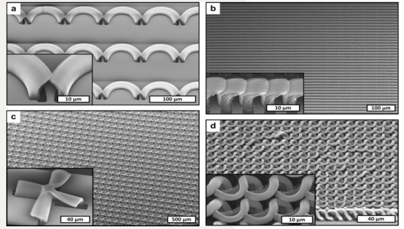 We have already made a significant breakthrough in the manufacturing of microstructured surfaces, which was published in a recent issue of Nature Communications. Microstructured surfaces can exhibit a variety of useful properties, including controllable mechanical stiffness and strength. They can even replicate the intricate structures found on the skins of certain plants and animals, making it possible to produce surfaces which have, say, the water-repellent or adhesive characteristics displayed by some insects. This particular technique works by causing carbon nanotubes to bend as they grow and form controllable complex shapes in three dimensions (see right). The process could also be used to engineer other properties, such as electrical and thermal conductivity and chemical reactivity, by attaching various coatings to the carbon nanotubes. In the meantime, our technique is already being put to good use, making surfaces which are being used as chemical microsensors, batteries and biomimetic smart surfaces.