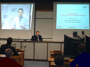 Dr. Spearing's co-instructors are Professor Carl Thompson at MIT and Professor Hejun Du at Nanyang Technical University in Singapore. Professor Steven Senturia (pictured on the screen in the picture above) gave a guest lecture in 4I6, and in addition his course on Microsystem Design is being delivered to Cambridge by videotape to serve as a graduate seminar series and the basis for a future fourth year module.